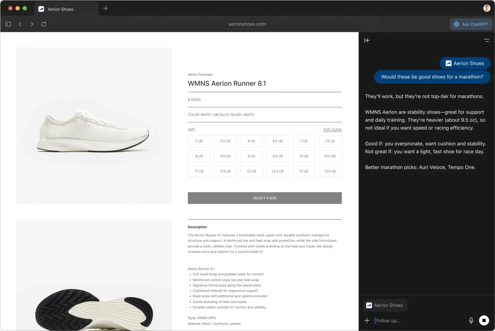 Atlas'ın en dikkat çeken özelliği, tarayıcının sağ tarafında her zaman hazır bekleyen ChatGPT butonu. Bu sayede gezdiğiniz site hakkında doğrudan sorular sorabiliyorsunuz.